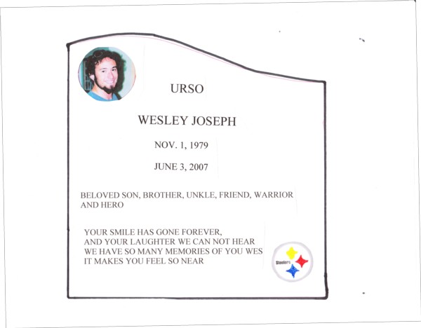Since CNA global insurance believes the death of Wesley Urso is noncompensable, his family and friends have been burdened with his funeral and burial expenses. The Defense Base Act claim has been held up for over a year now and the the defense attorneys were granted an extension to the May 20th date and the new trial date is set for November 20. Luckily during Wesley's 27 years of life he was surrounded by great friends that made this goal possible. Thank you to everyone that helped us make this monument a reality.